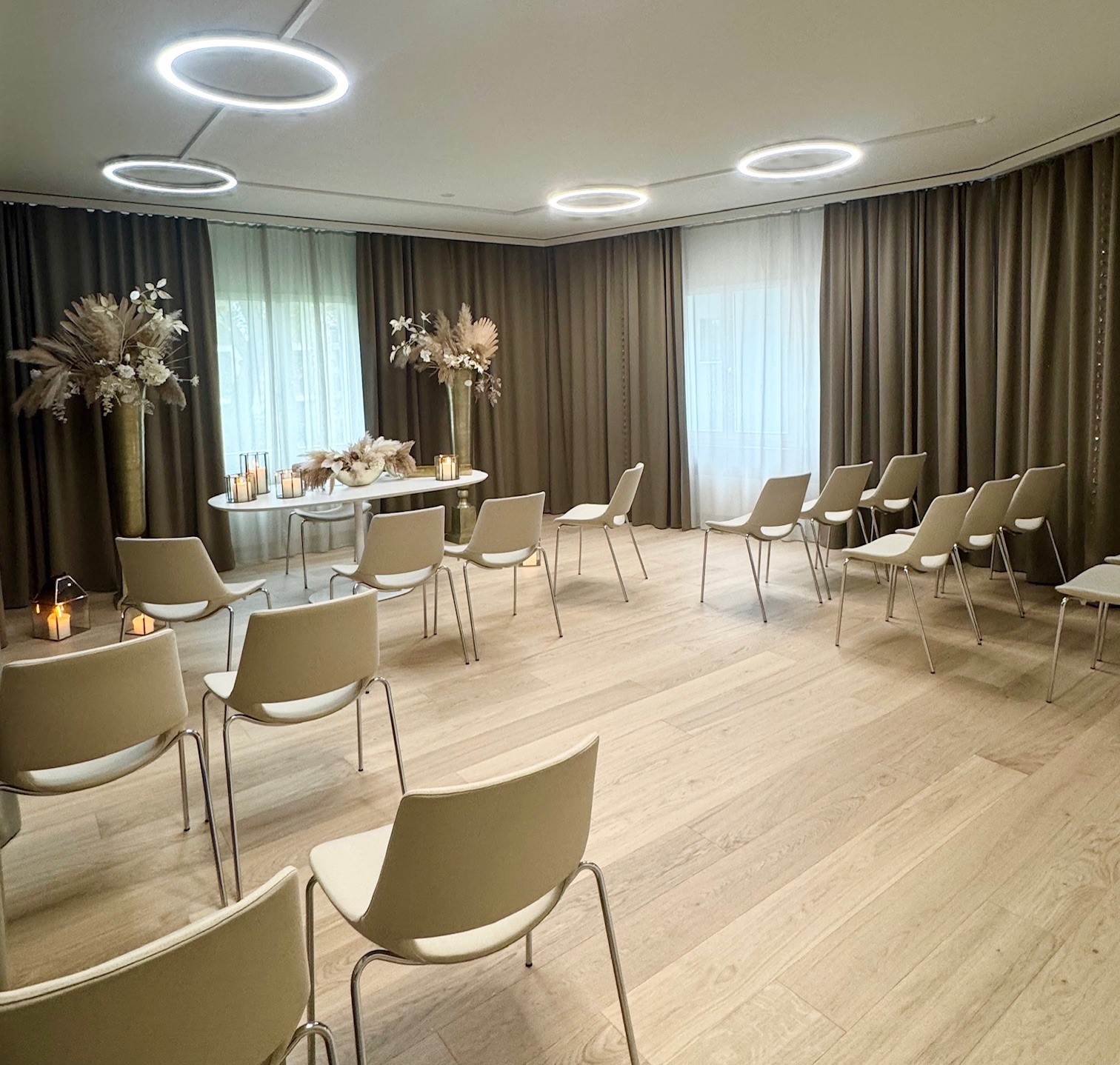 Ausschliesslich für Trauungen eingerichtet, können Sie im amtlichen Traulokal im Gemeindehaus Regensdorf Ihren besonderen Moment in einem modernen und romantischen Ambiente erleben.